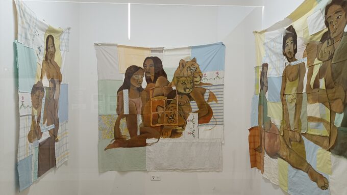 Ness, ancienne élève de notre collège, aujourd'hui en 3ème année à l'Ecole des Beaux Arts de Nîmes, présente 3 peintures à l'acrylique sur tissu réalisées lors de son année aux Beaux Arts de Venise.
