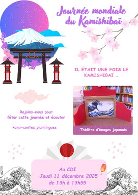Par MARTA NICOLAS, publié le lundi 9 décembre 2024 11:13 - Mis à jour le vendredi 21 novembre 2025 10:01Jeudi 11 décembre, nous célèbrerons la journée internationale du kamishibaï au CDI -
