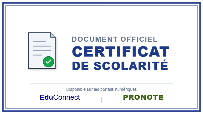 Certificats de scolarité / Disponible sur Educonnect et Pronote